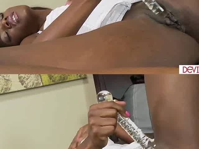 Black teen screwing her vagina with sex tool