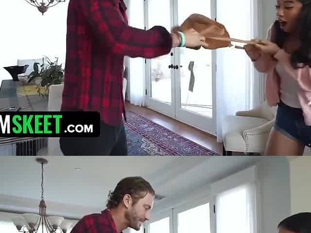 Teen gets fucked by a black dude with her daddy around