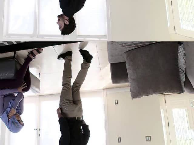 Sexy MILF Syren De Mer catches her stepdaughter's BF hiding behind a curtain
