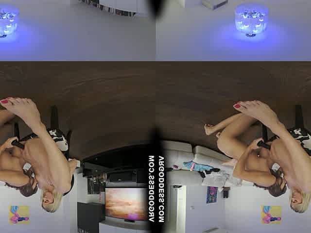 VIP4K. Dominant brunette in black pantyhose uses big toy to impress her GF