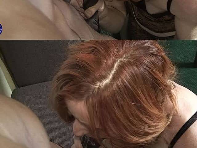 Red mature slut munching on a big black cock