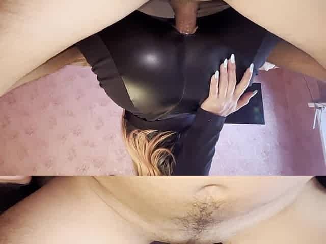Black Widow in leather jacket defeats her opponent with blowjob and handjob