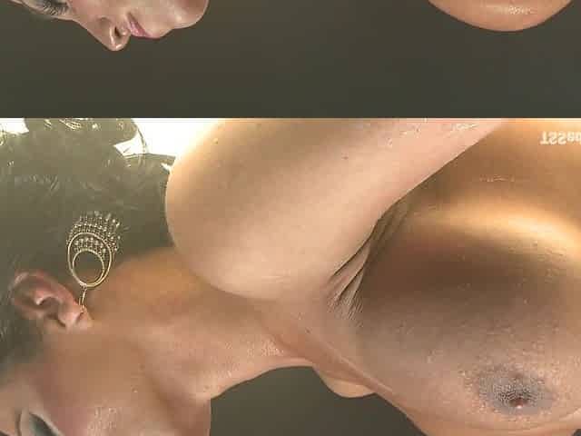 Black woman with huge tits licks the nipple