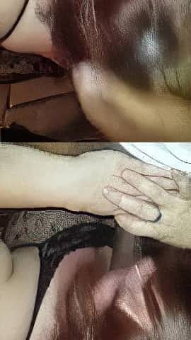Wife Handjob in Black Stockings