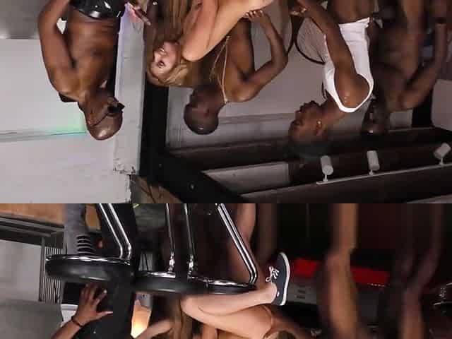 White chick is getting gangbanged by a couple of black stallion for the first time