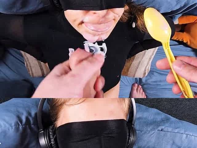 blind folded and throat screwed