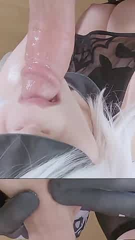 Busty Raven Haired Beauty Angel Princess Delivers Blindfold Blowjob & Titty Face Fuck