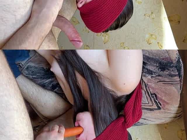 She Was Blindfolded and Sucking Before Another Guy Was Kissing Her.