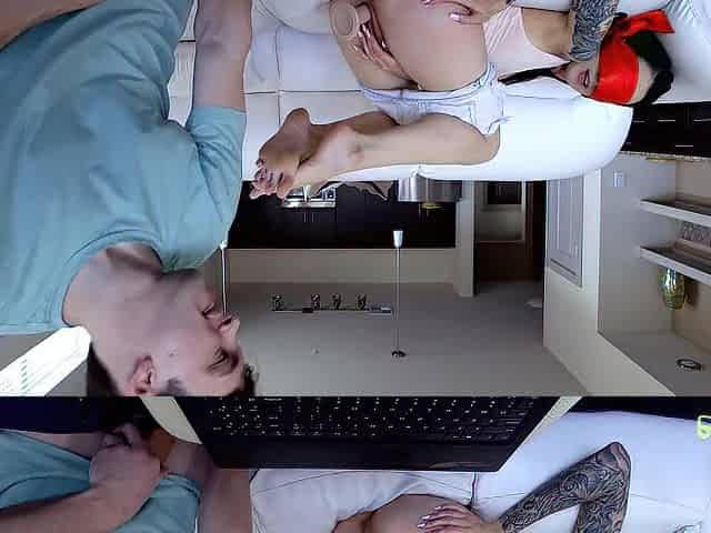 SIS.PORN. Stepbrother fucks unsuspecting blindfolded girl on the bed