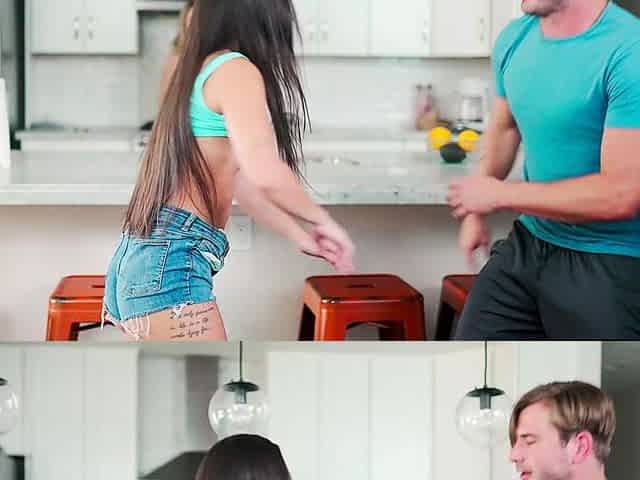 Stepson joins his stepmom and her student as they make out together