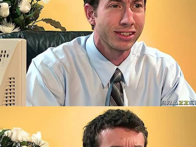 Mega busty secretary Katie Morgan gives a blowjob and goes black for the first time