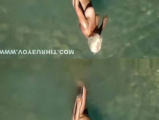 Mature nudist woman in the water