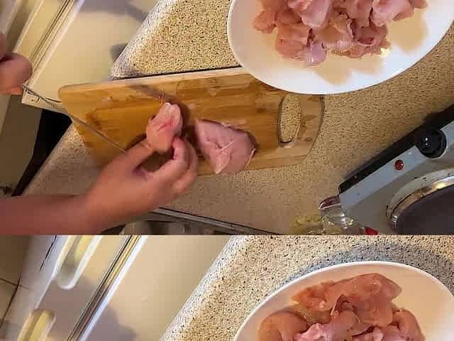 Cali is cooking topless in the kitchen