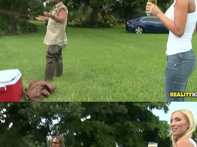 Sexy blonde milf is fucked outdoors after giving great head