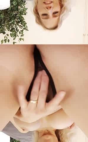 Busty blonde plays with her clit after showing you her tits