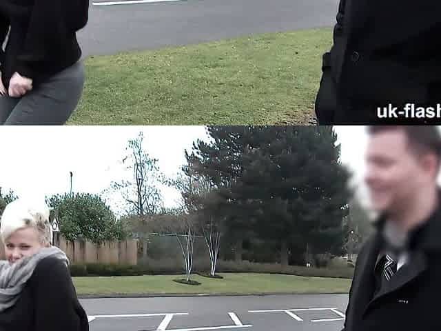 Astonishing blonde model Bree Branning is flashing her pussy outdoor