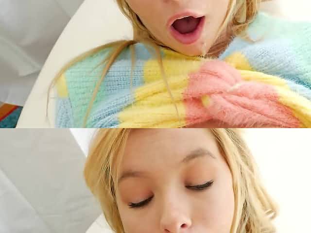 Amateur blonde babe suvks a dick and gets first time anal sex