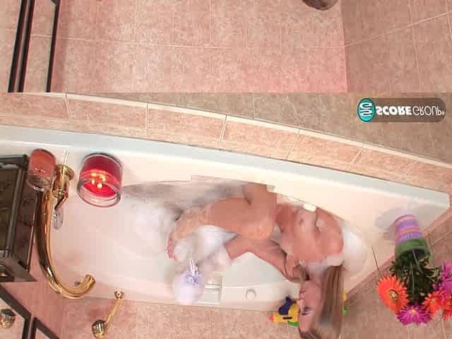 After she takes a shower blonde girl Kim masturbates in the bathroom