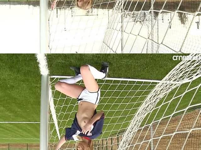 Naked soccer player with natural tits having fun - Violette