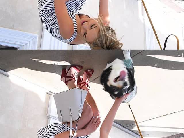 Sensual blonde with big boobs AbbyQ shows off her goods