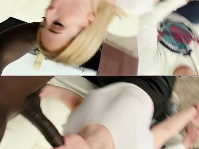 Flat chested blondie Chanel Grey hooks up with two big black guys