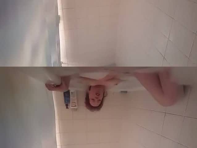 Natural belle in sexy lingerie plays with sex toy in the bathroom