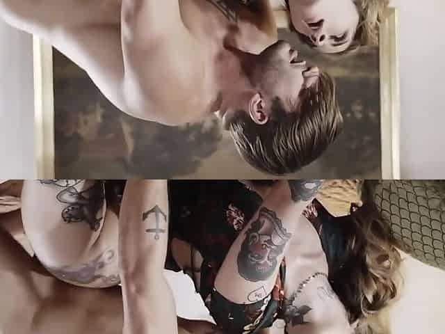 Lovely blond hooker rides and sucks tasty big cock of tattooed guy with passion