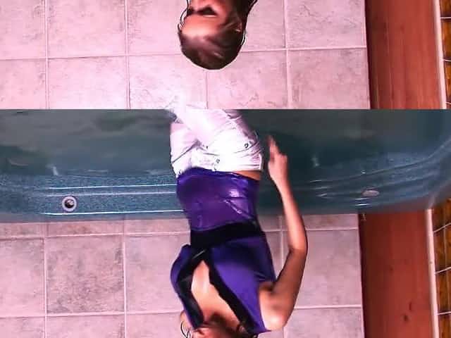 Sarah gets here purple blouse and tight white pants get all wet.