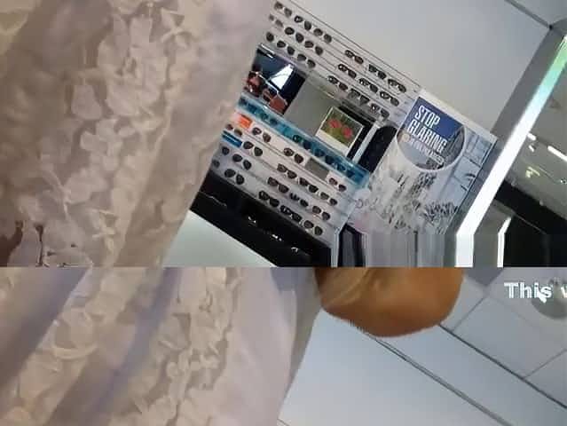 Asian MILF up skirt and up blouse in a store