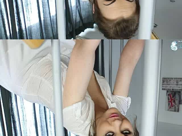 Funny babe Kinuski lifts up her white blouse and shows me her boobs!