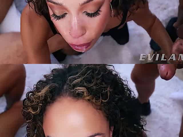 Hot Brunette Fiercely Face Fucked In 9 Dick Blowbang - Tommy King And Evi Langel