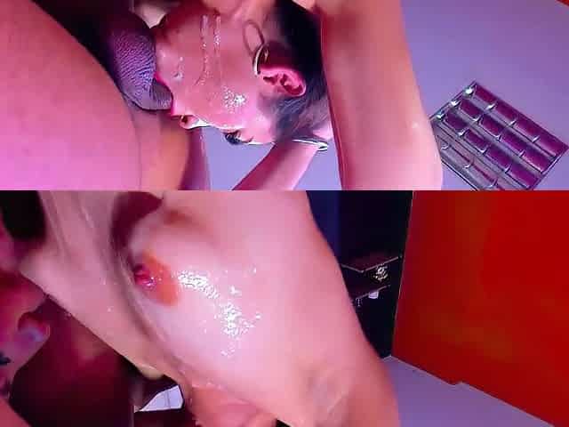 My entire rod goes down my ally's mouth, leaving her drooling