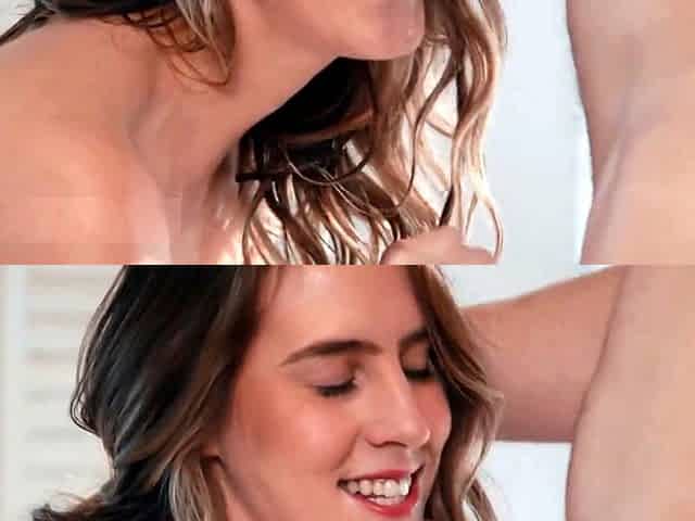 Handy guy gives brunette big-boobed Lily Lane a wild blowjob experience