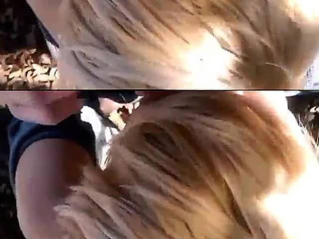 Blonde teen with a fat ass gives a sloppy BJ
