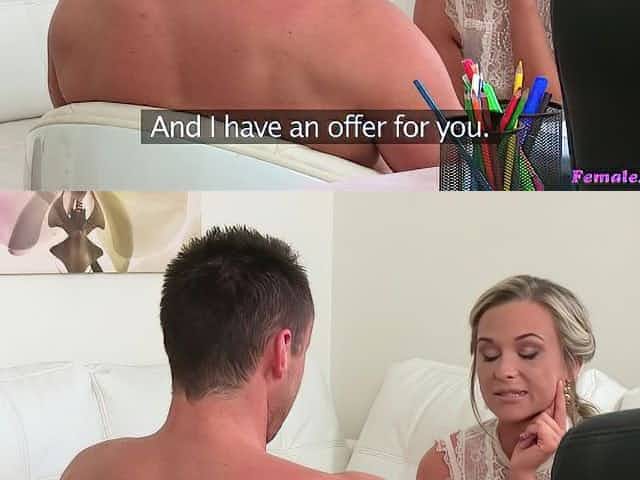 Sexy new blonde agent empties studs balls during first casting