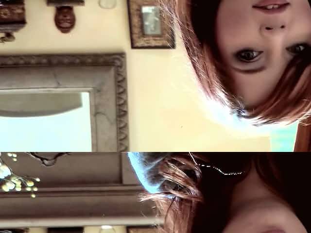 Nympho with bangs and red hair finds a big cock in the woods