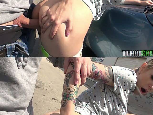 Pale girl Alex Harper gets into the van to give a BJ for money