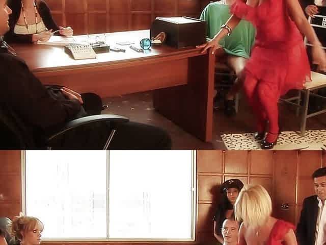 Two women work to please a gentlemen in an office setting