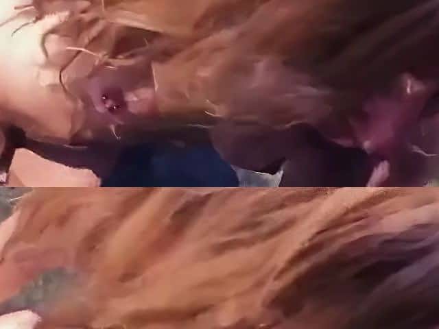 Outdoor blowjob with sexy blonde slut sucking hard horny cock on beach