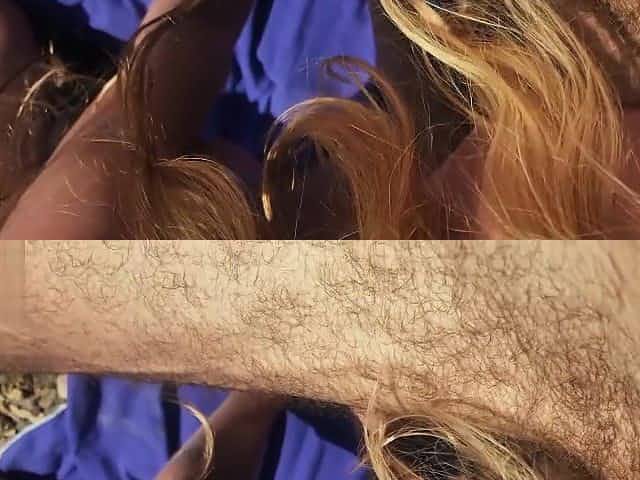 Sexy lady fingers herself and blows dick in jungle and on the beach.