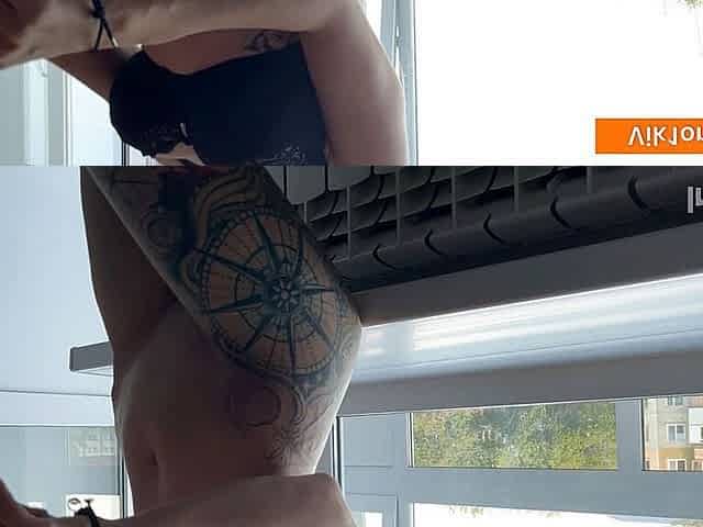 Wife met from work with hot blowjob and fuck by the window