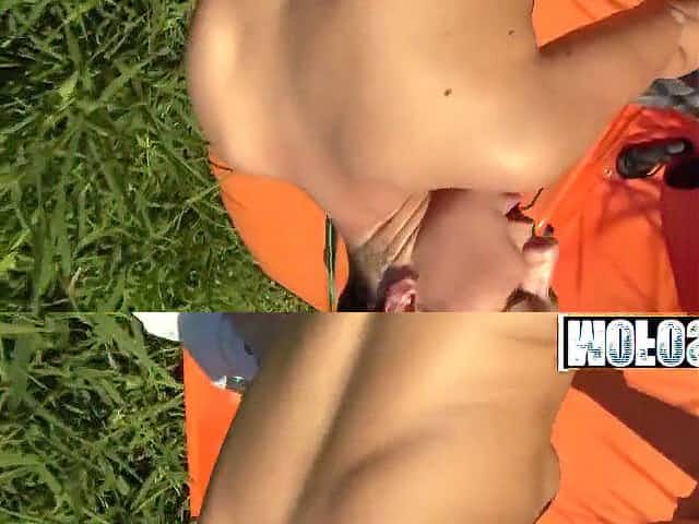 Shaved-pussy, outdoors