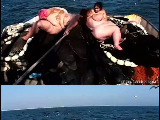 Huge sweaty fatties perform nasty lesbian 4 some on the boat