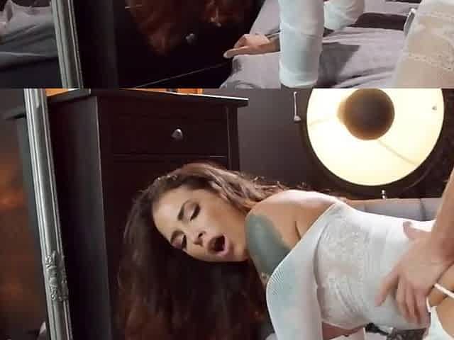 "Hot Babe Daisy Lee Fucked in White Bodystocking"