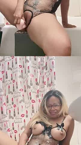 LaSirena69 gets oiled up and fucked through the hole in her bodystocking