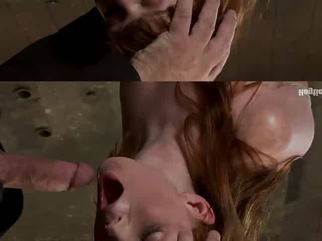 Sexy Irish girl is severely bound, made to suck cock and cumHer puffy nipples clamped and