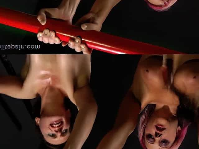 home video lesbians in latex rubber bondage and strap on suck and fuck