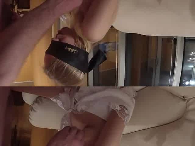 I teach my blindfolded, innocent bride how to suck my dick and cum all over