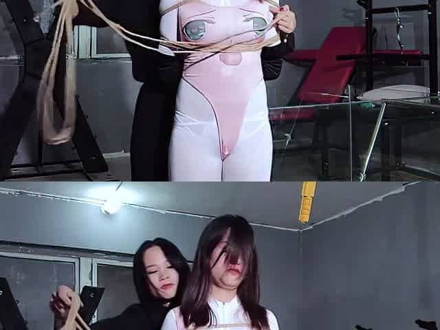 Pretty Lady In Catsuit Bound With Vibrators