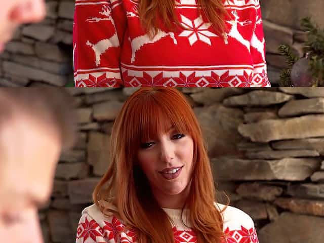 Gorgeous busty redhead Lauren Phoenix gives titjob and sensual blowjob